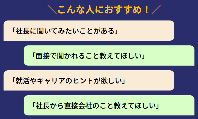 人狼採用終了後、希望者はそのままオンラインで約30分間、社長に直接質問ができる特別タイムをご用意しています!